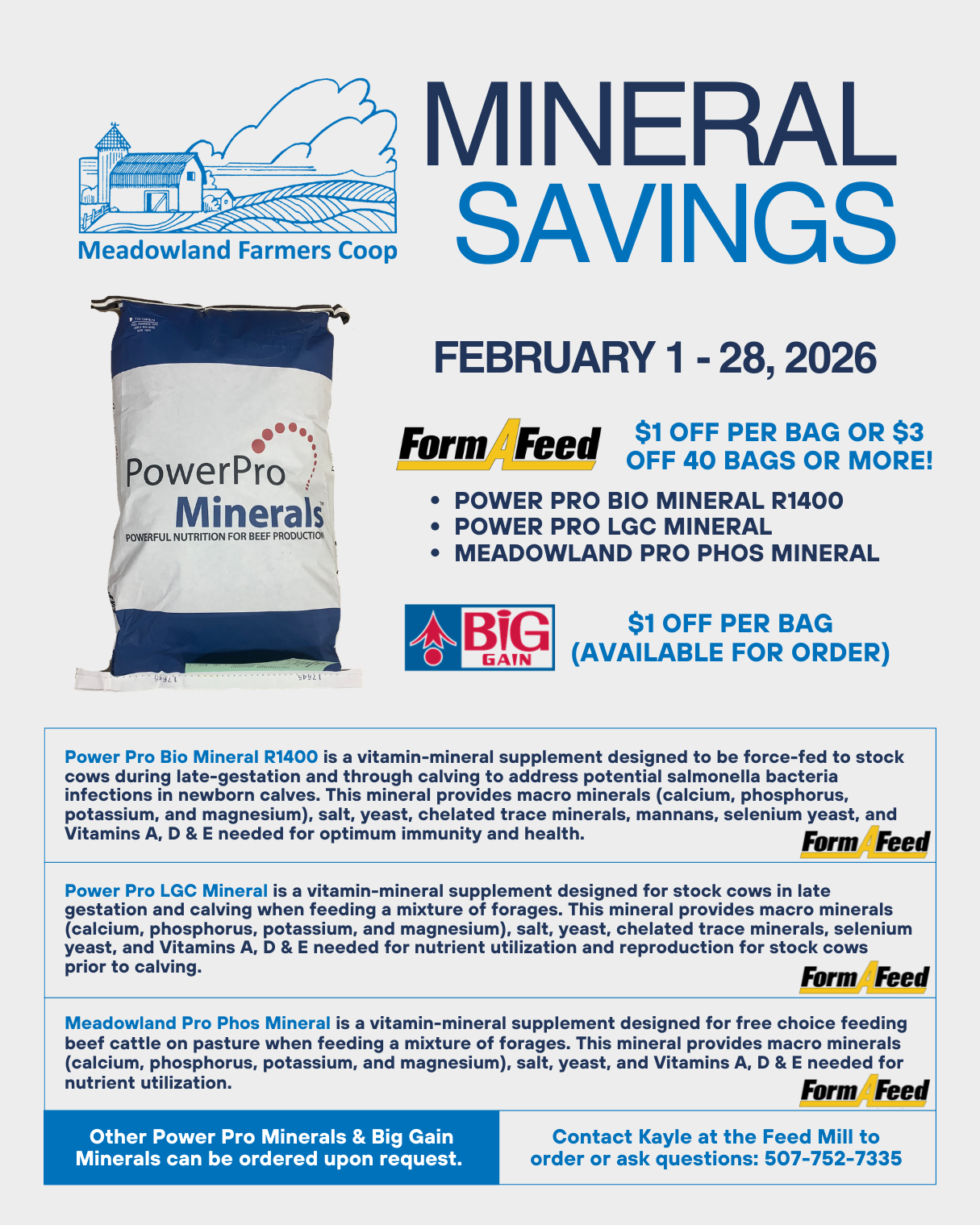 Located in Lamberton, Meadowland Farmers Coop has a full service feed mill where we offer high quality feed production and delivery at a competitive price to our customers. We work with nutritionists from Form-a-Feed, Hubbard and Big Gain to meet the individual needs of our customers.